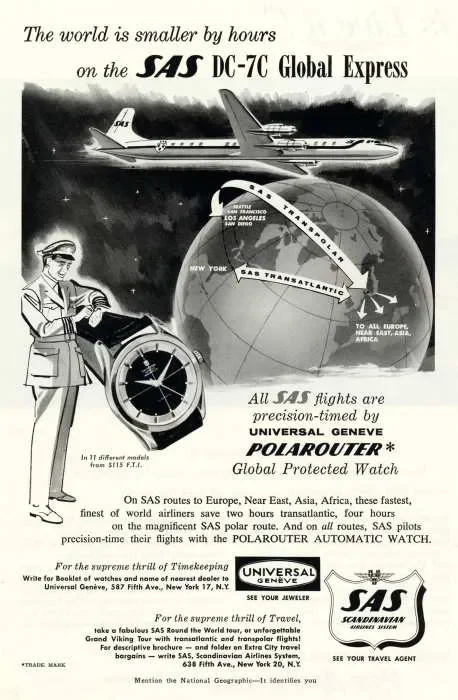This early Polarouter was designed for pilots of the newly-formed Scandinavian Airlines System polar flights, soaring over the North Pole where temperatures could swing wildly in just hours. Universal Genève needed a watch that could handle these extremes and still tell accurate time. Enter the Polarouter.